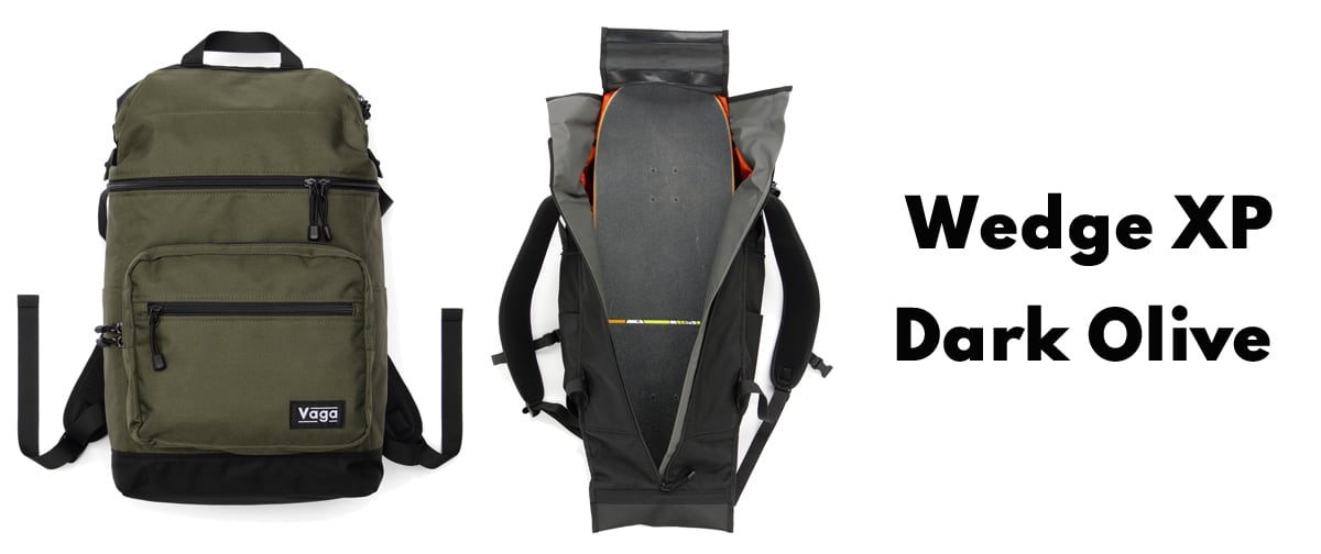 Wedge 3Gは、VagaのベストセラーバックパックWedgeの第三世代モデルです。 Wedgeシリーズのバックパックは、スケートボード収納可能な形状に変形します。 スケートボード収納スペースはメイン収納部から独立しており、開口部が背面にあるので他の荷物を収納したまま素早くスケートボードを出し入れすることができます。 Dimension: W:30cm x H:45cm x D:15cm Volume: 20 L