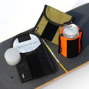 ワックスの他にスケーターがクールに保ちたいものといえば…。Nano Coolerは、ドリンクホルダーとしても機能します。フラップ部分の折り返しを調整すれば500ml缶にもフィット。